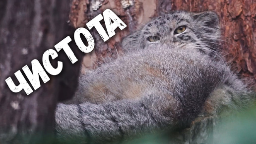 Манул перевернулся на другой бок и снова умывается. Ленинградский зоопарк