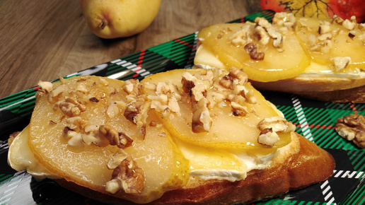 Брускетта с карамелизированной грушей, сыром Бри и орехами