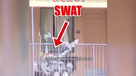 Эпичная борьба преступника с полицейским роботом в Техасе.