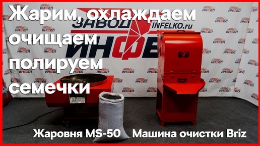 Жарка семечки подсолнечника на жаровне MS-50 и охлаждение, очистка, полировка на машине Briz
