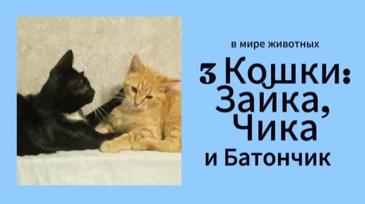 Взаимоотношения трёх кошек в доме. Главная кошка Зайка не принимает Чику, её котёнок Батончик с ней играет.
