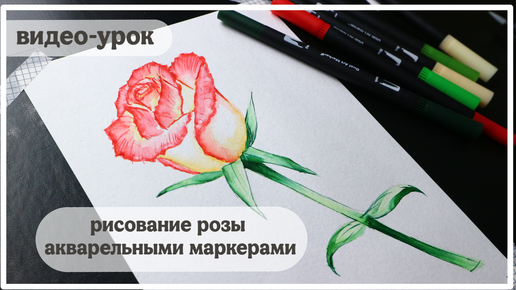 Простой видеоурок для начинающих художников. Рисуем розу акварельными маркерами