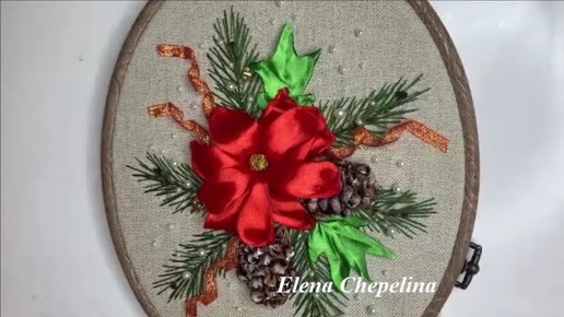 Новогодняя композиция, вышитая лентами, часть 3. Мастер класс по вышивке лентами.