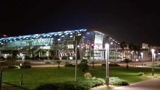 Посмотрим на красавец железнодорожный вокзал Адлера ночью, сентябрь 2024.