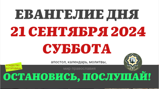 21 СЕНТЯБРЯ СУББОТА ЕВАНГЕЛИЕ АПОСТОЛ ДНЯ ЦЕРКОВНЫЙ КАЛЕНДАРЬ 2024 #мирправославия