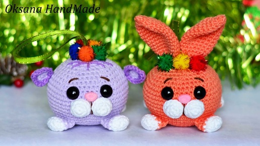 1/2 Игрушка на Елку Котенок и Кролик. Мастер класс и схема. Символ 2023
