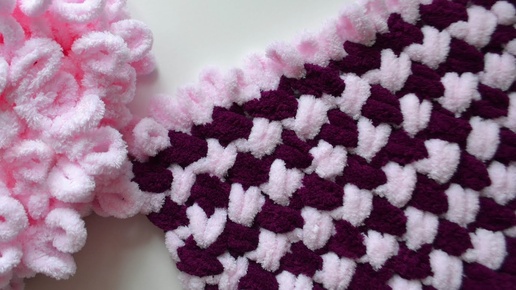 Узор "Плетенка" в два цвета из Alize Puffy. Как рассчитать количество мотков на плед.
