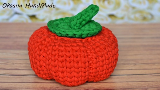 Корзина с крышкой Тыква из трикотажной пряжи. Halloween