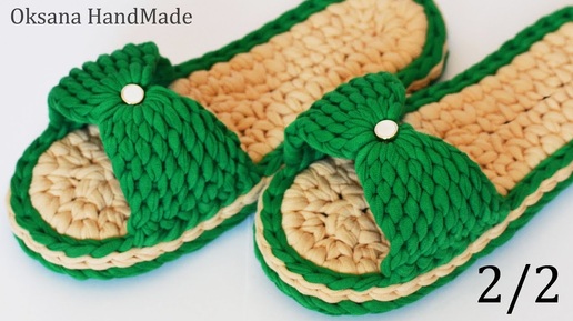 Тапочки крючком из трикотажной пряжи. 2/2. Вяжем верх. Slippers crochet
