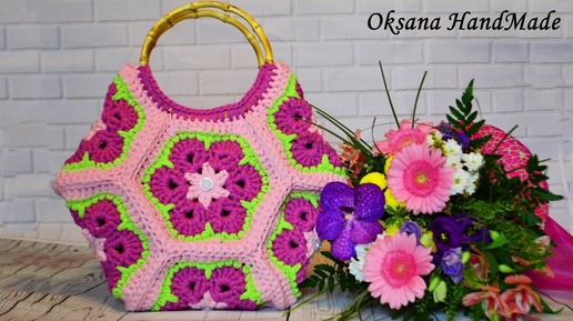 Сумка крючком из трикотажной пряжи. Bag crochet