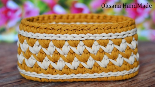 Корзина крючком из трикотажной пряжи. Basket crochet
