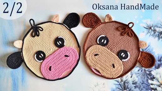 Прихватка подставка крючком "Бык и Коровка" 2/2 ч. Символ 2021. Crocheted stand