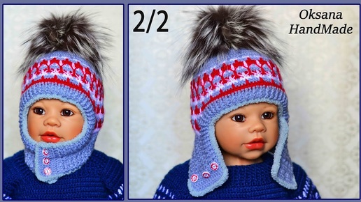 Зимняя ШАПКА УШАНКА крючком. Часть 2/2. Crochet hat