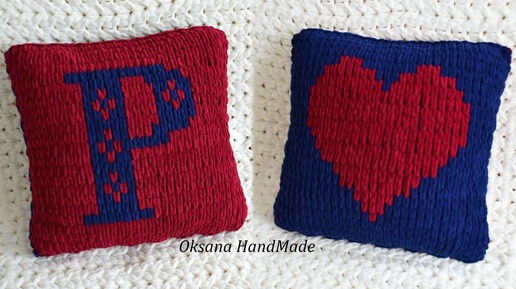 Именная наволочка на подушку из пряжи Alize Puffy More