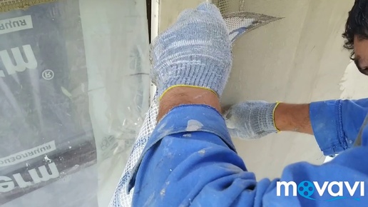 Мокрый Фасад СФТК, базовый армирующий слой по пенополистирольной системе, втапливаем в клей сетку