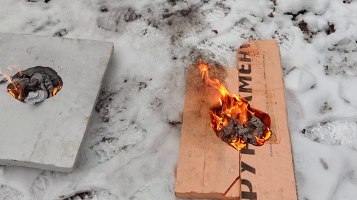 Огневые пожарные испытания пенополистирола ППС16Ф, ЭППС Пеноплэкс и ЭППС Карбон Технониколь