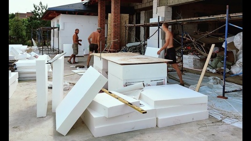 Начинаем утепление пенопластом фасадов дома, построенного из газобетона. Приклейка пенопласта CT83