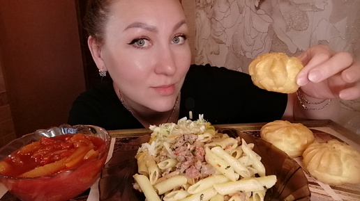 МУКБАНГ/МАКАРОШКИ АЛЯ ПО ИТАЛЬЯНСКИ😆ЛЕЧО И ПРОФИТРОЛИ🔥🔥🔥/СТАРОСТЬ КО МНЕ ПОДКРАЛАСЬ НЕЗАМЕТНО🤪