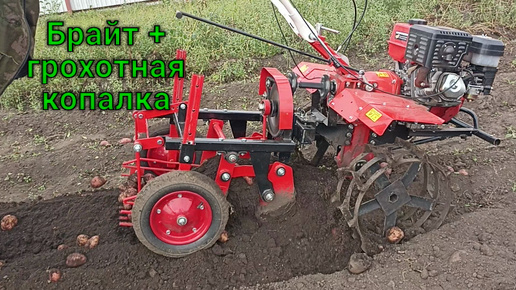 Копаю картошку мотоблоком Брайт, прицепив грохотную картофелекопалку.
