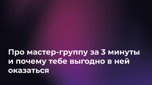 ⚡️ Про мастер-группу за 3 минуты и почему тебе выгодно в ней оказаться