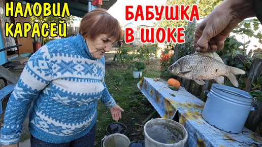 НАЛОВИЛ КАРАСЕЙ В ДЕРЕВНЕ / БАБУШКА С АНГЕЛИНОЙ ПРИГОТОВИЛИ УЖИН / ПОЖАРИЛИ РЫБУ / РЫБАЛКА / ВЛОГ