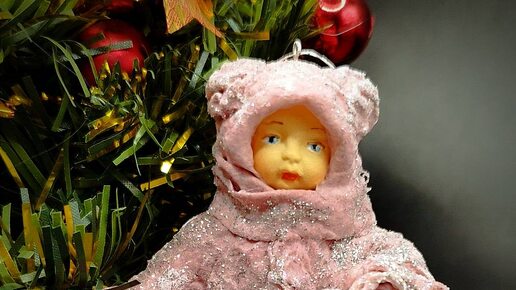 Ватная игрушка на елку. Машка со снежком
