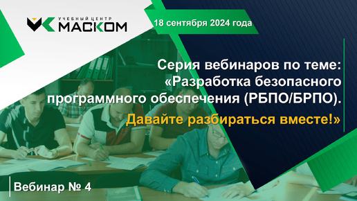 МАСКОМ УЦ - Вебинар 4 серии вебинаров по теме: «Разработка безопасного программного обеспечения (РБПО/БРПО). Давайте разбираться вместе!»