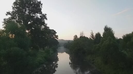 УТРО В ДЕРЕВНЕ. ПРИРОДА, ТУМАН НАД ВОДОЙ. ПЕТУХИ ПОЮТ