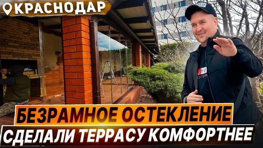 Безрамное остекление в Краснодаре террасы. Панорамное раздвижное остекление террасы в Краснодаре.