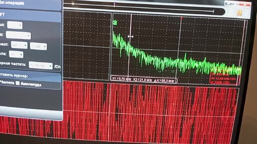 Усилитель на 2х транзисторах, next версия. Анализ спектра. Подключен через микрофон (воздух). Схема