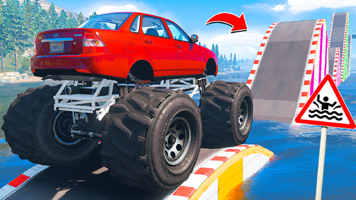 ПРОЕХАЛ ВОДНЫЕ ТРАМПЛИНЫ на ГИГАНТСКОЙ ЛАДЕ ПРИОРЕ в ГТА 5 МОДЫ - ЭКСПЕРИМЕНТЫ в GTA 5 MODS