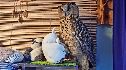 Сова - тюленяхватова и неотдава. Филин Ёль жмёт тюленя, сойки Пончики прилетели за донатами