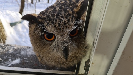 Сова-морознова наслаждается зимой полностью во всю ширь лицевого кружка