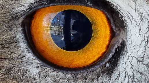 Макро сова вида филин. Солнце в глазах. С Днём орнитолога!