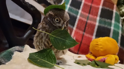 Совёнок Лучик перекусывает листики. А что, мышек на ужин совсем нет?