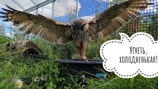Возня совы в тазике и вокруг него. Летнее АСМР с облачками, кузнечиками и птиченькой