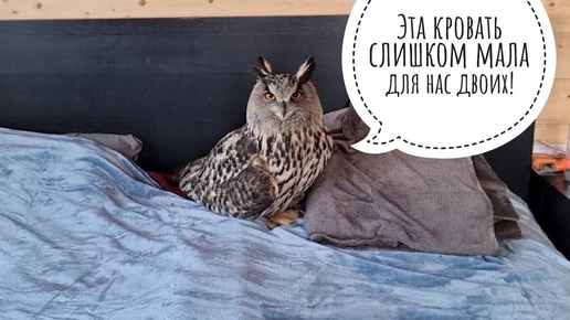 Сова Ёль проводит дождливый день в кроватке, а кошка Морошка валяет тыкву