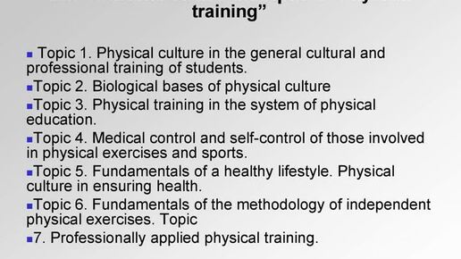 Лекция № 1 "Физическая культура". Lecture 1 "Physical training"( ''Physical Culture'').