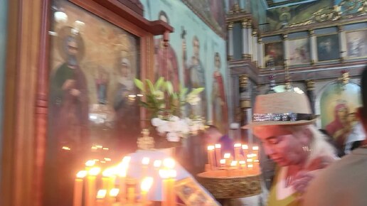 Чудотворная икона Царица Цариц и свеча в Храме Рождества Богородицы