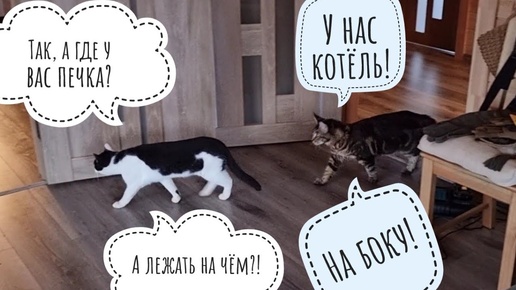 Кошка Морошка показывает коту Бонифацию свой дом, раз уж припёрся утром незванный