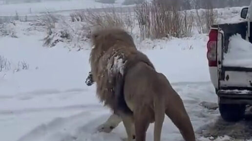 Снегопад в ЮАР, сентябрь 2024 года. Реакция местных жителей, шикарный лев