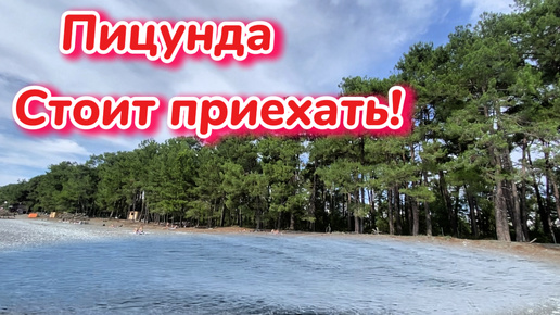 Пицунда. Успели отдохнуть до урагана. Красивая природой, растут сосны вдоль моря. Людей много, а море холодное после шторма