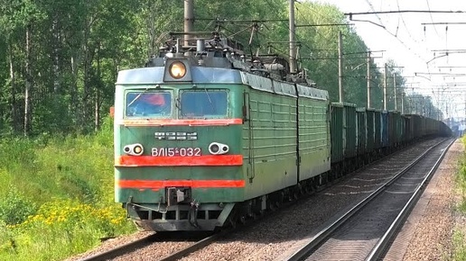 Сдвоенный грузовой поезд под тягой ВЛ15С-032 в голове и ВЛ10У-341 в середине и встречный ВЛ10У-166
