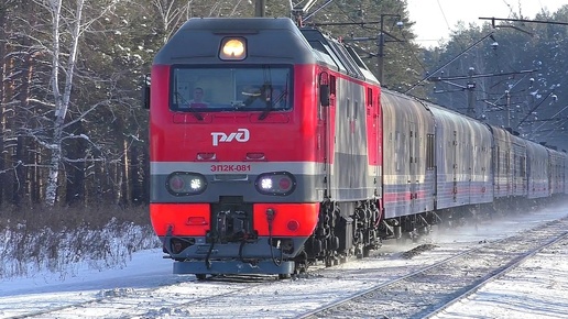ЭП2К-081 с почтово-багажным поездом Владивосток - Москва следует через о.п. Чапаевская