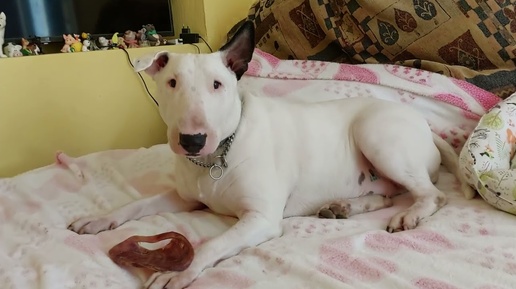 Бультерьер Этуаль и вкусняшка питомник Кастропуло Крым