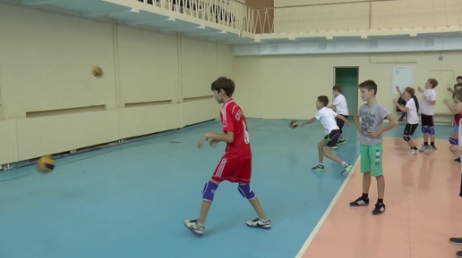 Обучение волейболу детей. Эстафета с мячами с использованием стены