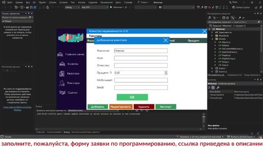 Автоматизация работы агентства недвижимости. Программа на Visual C# + SQLite. Курсовая работа