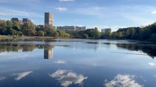 Вид со смотровой площадки на Москву и озеро из парка покровское-стрешнево
