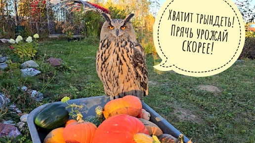 Первый мороз! А сова Ёль успела прибрать все тыквы и радуется погоде. По холодку ужин вкуснее!