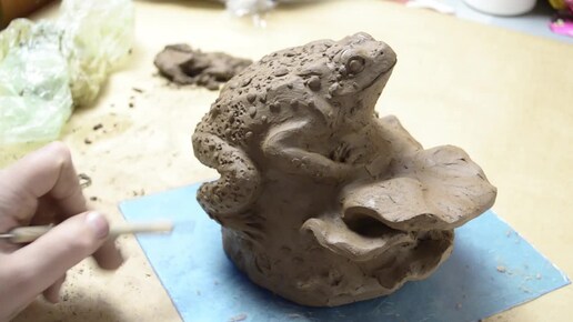 Процесс скульптуры лягушки